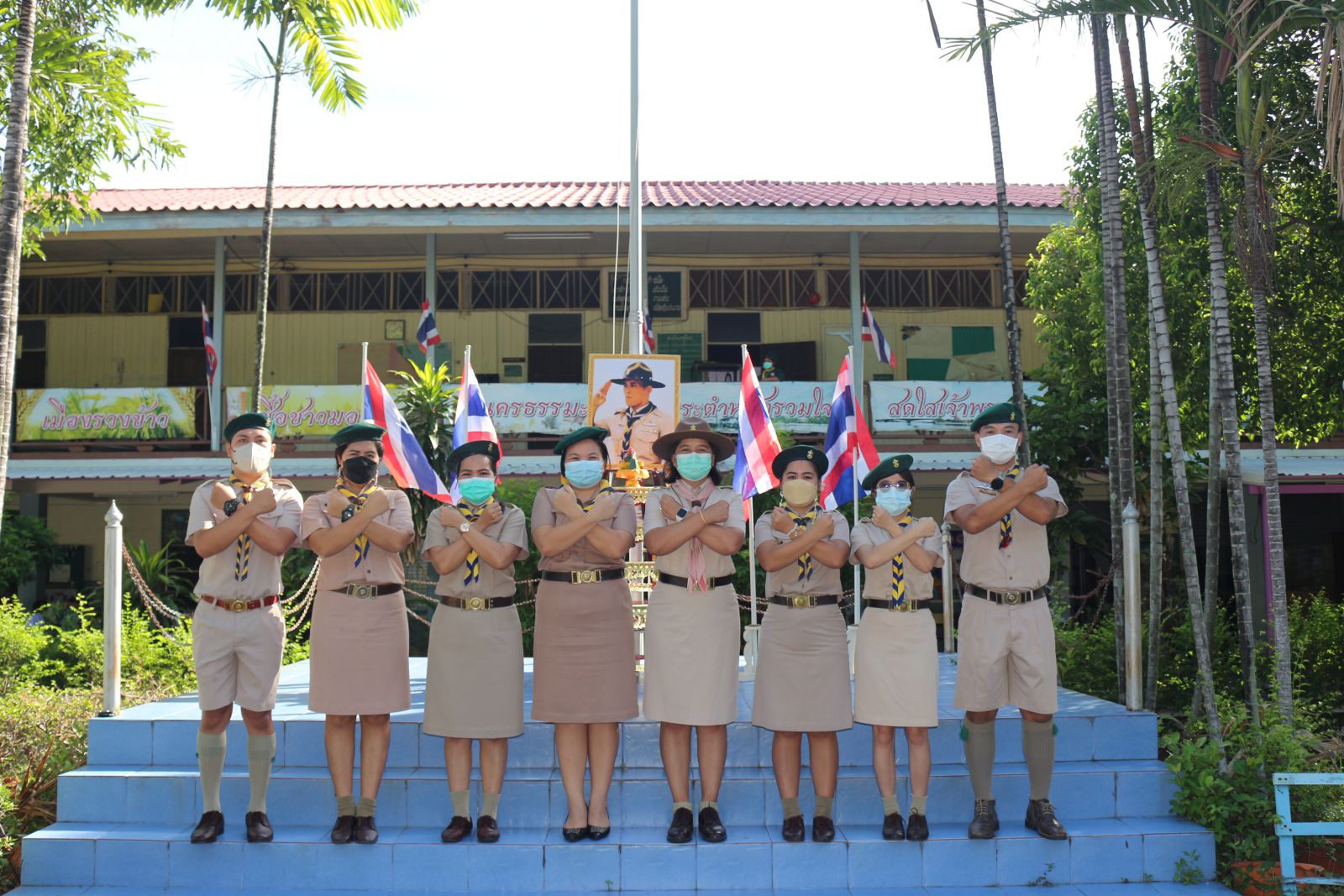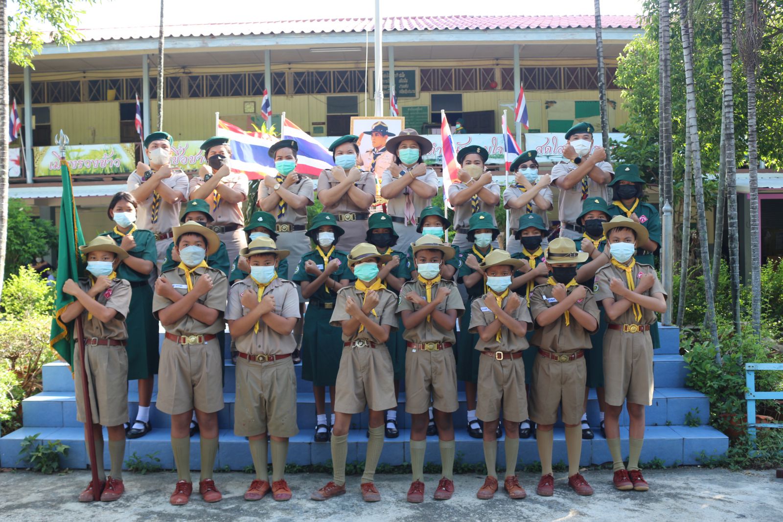 ผู้บริหาร  คณะครู และนักเรียน แสดงสัญลักษ์การป้องกันการทุจริต