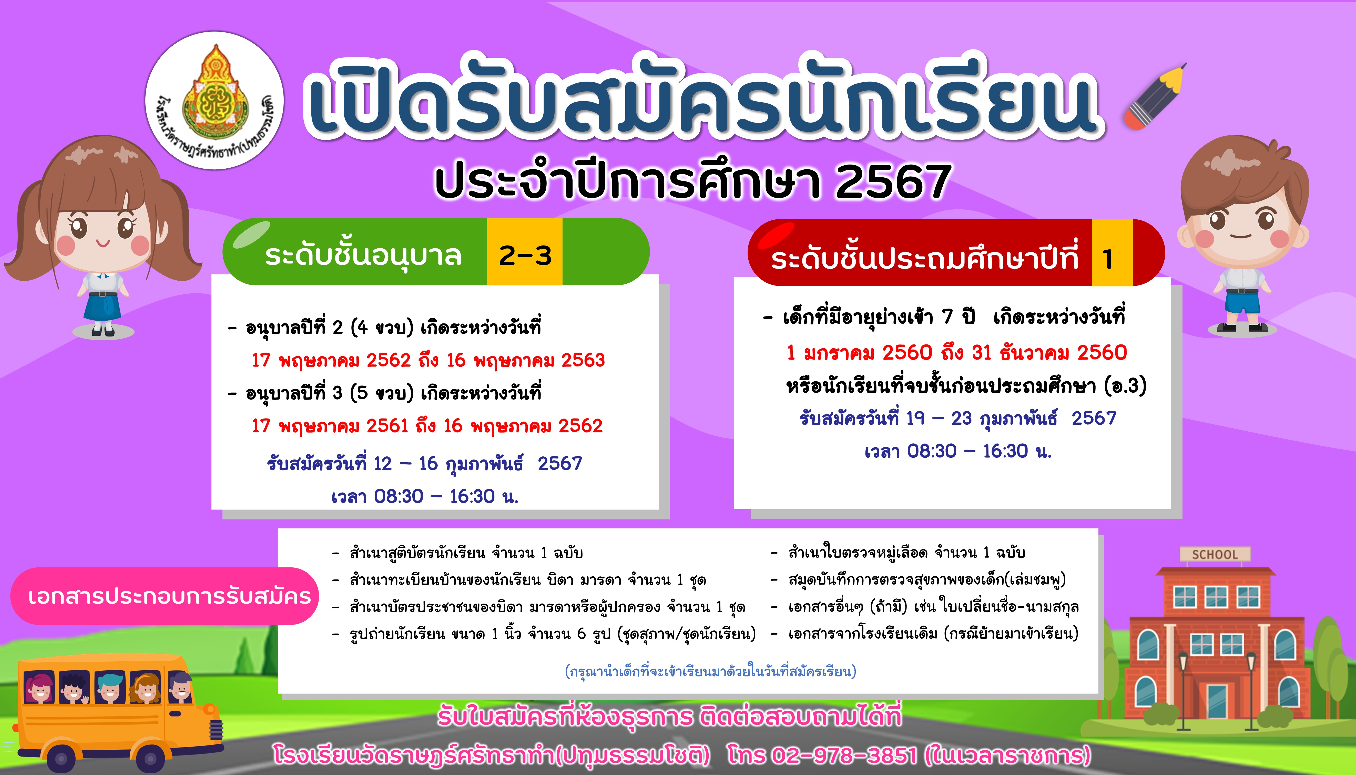 กำหนดการรับสมัครนักเรียนใหม่ ปี 2567